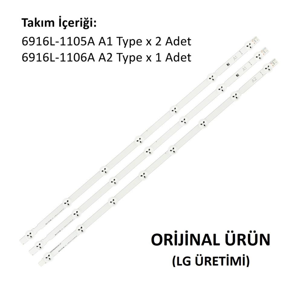 LC320DUE-SF-R1 PANEL LEDLERİ, 6916L-1105A, 6916L-1106A, A1, A2 TYPE, E74739 94V-0, 3 ADET TAKIM LED ÇUBUK